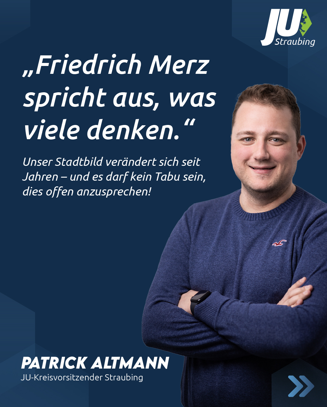 Als Vorsitzender der Jungen Union Straubing ist es mein Ziel, dass unsere Stadt auch in Zukunft ein Ort bleibt, an dem man gerne lebt, arbeitet, feiert, studiert, aber auch Familie gründet und sich wohl fühlt. Gemeinsam mit Markus Pannermayr, unserem OB-Kandidaten, Oberbürgermeister und CSU-Kreisvorsitzenden, möchte ich diese Zukunft aktiv mitgestalten.