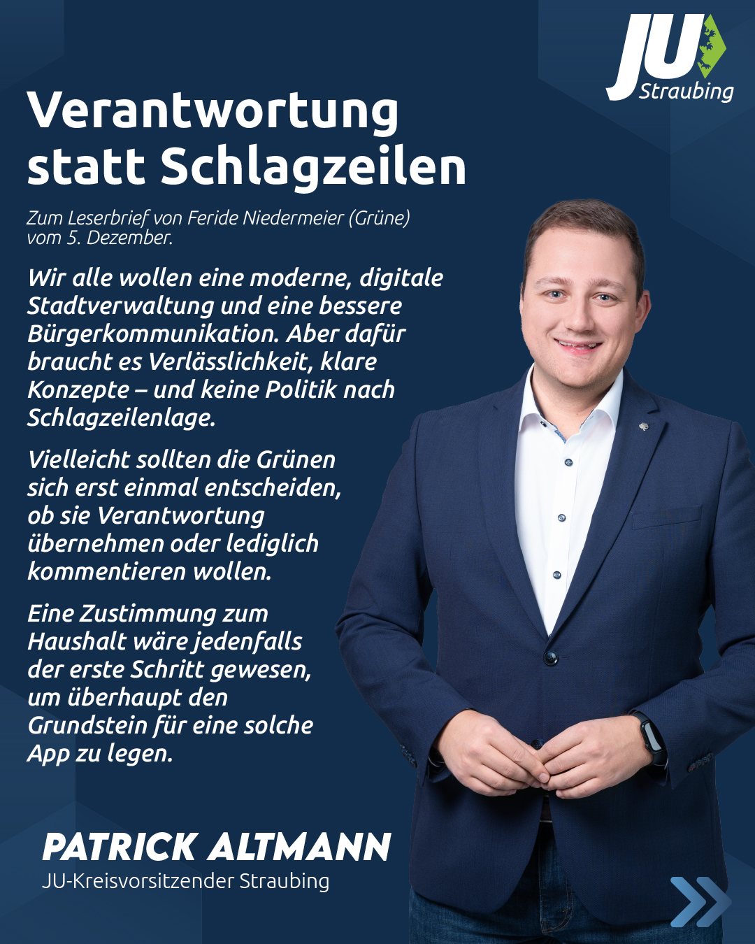 Für mich bedeutet das: Digitalisierung konsequent vorantreiben, Bürokratie abbauen und Verwaltung bürgerfreundlicher machen. Ich will, dass Straubing zur Vorreiter für eine digitale Verwaltung und moderne Stadtentwicklung wird.